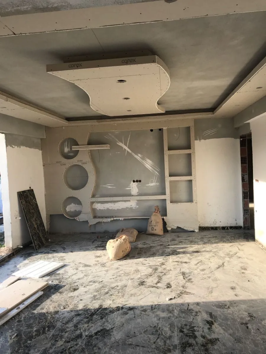 - الترميم الداخلي: غرف المعيشة، المطابخ، الحمامات، والديكورات الداخلية